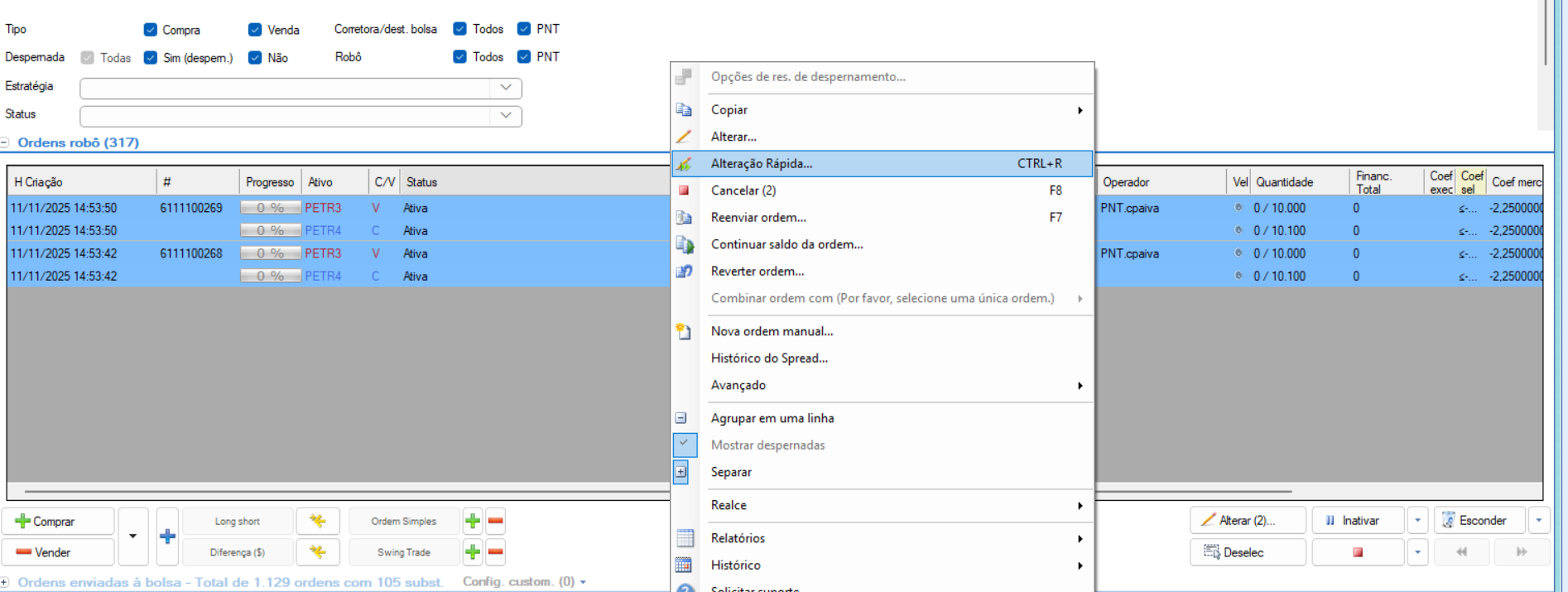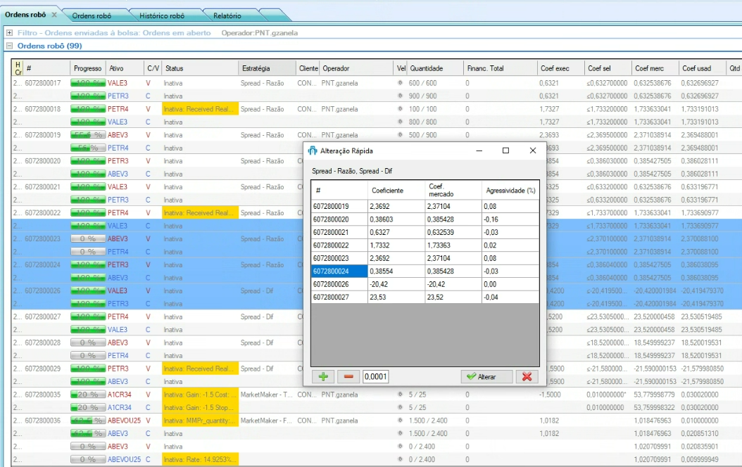 A nova funcionalidade permite a alteração do coeficiente das ordens de forma mais ágil e eficiente, tornando o processo de edição mais prático e dinâmico. Atualmente, está disponível para os seguintes tipos de ordens: Spreads (entradas) e Multilegs (entradas).