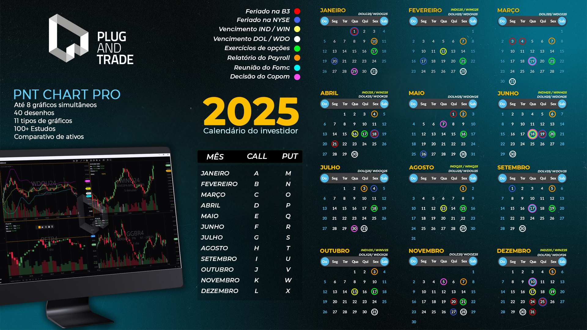 Que tal ter um calendário com todos os feriados e vencimentos dos principais ativos da B3 em seu background?